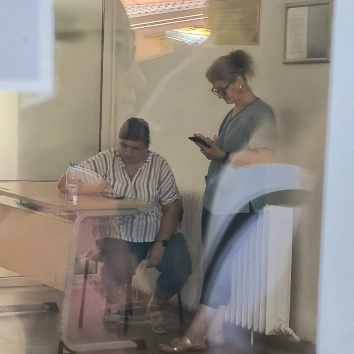 După cum se poate vedea, „doamnele” secretare stau nepăsătoare pe telefon și-și bat joc de elevi.