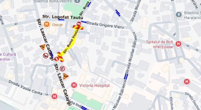 În perioada 17–24 aprilie, circulația rutieră va fi închisă pe un tronson al străzii Buna Vestire din Iași, între intersecțiile cu străzile Lascăr Catargi și Grigore Vieru, precum și pe strada Logofăt Tăutu. Măsura este luată pentru desfășurarea unor lucrări de refacere a carosabilului.