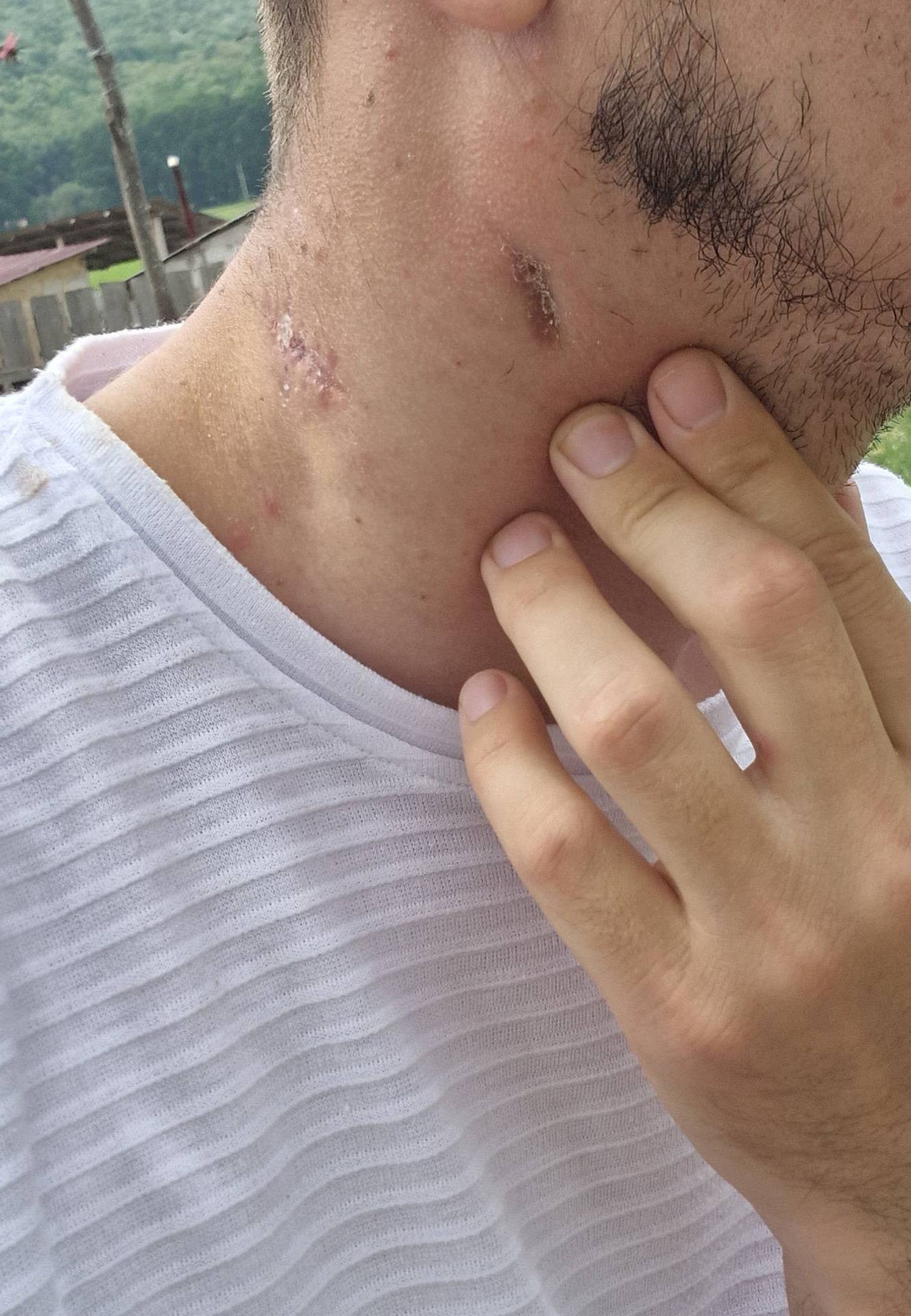 La câteva luni, mi s-a umflat din nou mai jos și am mers la IRO Iași. Am stat internat 3 zile, m-au tăiat, după cum se vede în poză. Am făcut două biopsii, CT și ecografie ganglionară. Medicii suspectau că am adenopatie sau actinomicoză. După 10 zile au venit rezultatele și au fost negative. Mi s-a zis să mă bucur, căci nu am cancer și că rezultatele sunt negative. Mi-au zis că ei mai departe nu au ce să mai facă, așa că mi-au dat toate foile și m-au trimis la Spitalul de Boli Infecțioase, cum că aș avea o infecție în corp”, a explicat tânărul.