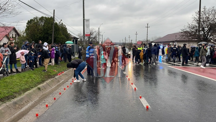 UPDATE 2: Oamenii au venit cu lumânări aprinse la proteste. De asemenea, la fața locului se află Jandarmeria, Poliția Locală și Poliția Rutieră.